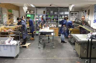 The working sessions and silk-screen workshops take place within the semester time frame, and they alternate with the events of the lecture series. The credit points for the Wahlfacharbeit (old curriculum) and the Vertiefungsarbeit (new curriculum) can both be obtained in this course.