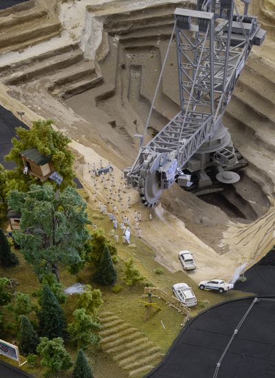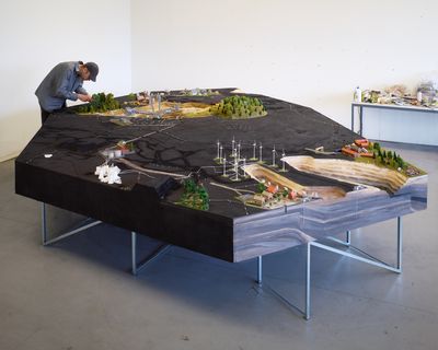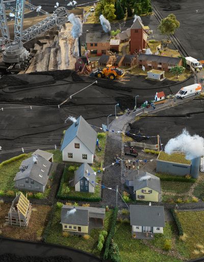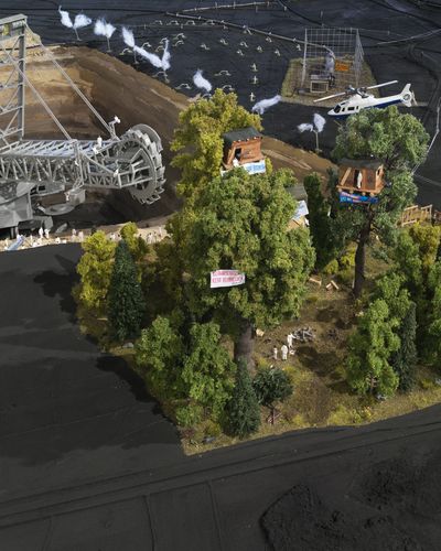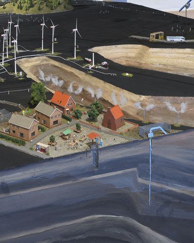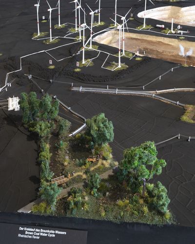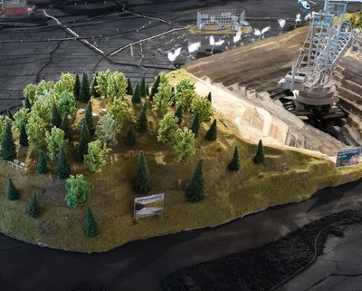 In the Power to the People project, presented in the form of a territorial model, students of the chair of Architecture of Territory at ETH Zürich have portrayed stories of struggle as opportunities for a just energy transition and the social and ecological repair of the land. The model of the Rheinisches Revier, a 5,000 square kilometer coal mining region with a population of nearly 2.5 million residents, showcases miniature scenes illustrating stories of struggle for the social and ecological repair of the area.