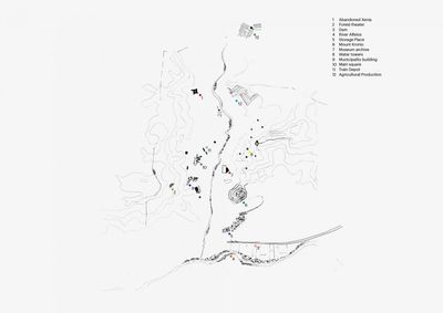 The contemporary village of Olympia sprouted as a parasite adjoining the archaeological area soon after the ruins were discovered. To this day, the village life is based on seasonal tourist visits, mainly during the summer. The village main road is lined with restaurants, tourist agencies, hotels, two museums and a municipal building—remarkably, nearly all public buildings in Olympia are of high architectural value. The municipal building, the former Xenia Motel, is designed by Aris Konstatinidis, one of Greece’s leading modern architects. Xenia, after the ancient Greek concept of hospitality, was a nationwide state-run project of tourist infrastructure development during the 1960s and ‘70s—today the Xenia structures in Olympia and throughout Greece are largely abandoned and awaiting privatisation.