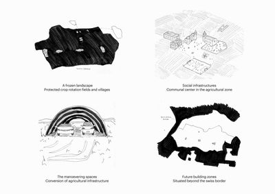 In the very south of the Canton of Geneva, the agricultural commune of Bardonnex and its three hamlets form the gate to the French commuter towns around St Julien. It is located within Geneva’s agricultural belt of Surface d’Assolement, 8400 hectares of protected crop-rotation area consisting of open land, intercalary artificial grassland, and arable grassland. The conception of this zone was given by a federal law in 1992 requiring each canton to reserve a certain percentage of land for self-sufficiency during times of crisis. More than safeguarding Geneva’s food supplies, this belt of land has become crucial for the city’s exclusivity and high quality of life: few other cities today have such a small, compact footprint and a pristine cultural landscape nearby.
