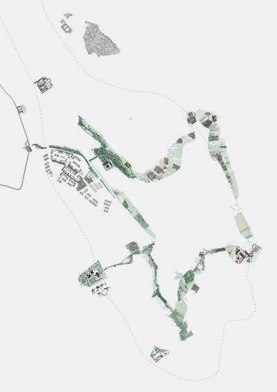 The project Kumodraž Agriculture Park: Flipping Hollow to Public Front explores design possibilities of hybrid agriculture landscapes in which interests of water management, biodiversity, and land opening up for development can be mutually achieved. The project works on flipping fronts, articulating Kumodraž Agriculture Park based on the potential of its current dormant productive lands and its topography. Traditional agriculture practices will be picked up in a contemporary way and enhanced with urban functions and services. The Agriculture Park’s new public landscape typology will combine city and countryside qualities in its four structural elements: The Productive Core, The Garden Front, The Vital Stream, and The Valley Avenue, which ties and activates the whole site.