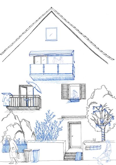 The Landsehnsucht led many wealthy people from Zurich to Zumikon, who build a single-family house for their children in the green meadow. 20 years later, after the children have moved out, these neighbourhoods have lost on vibrancy and what remains is an ageing population of home owners and high earners. Zumikon’s single-family house landscape of 63 percent is above the Swiss average. These houses are mainly inhabited by pensioners. This results in 80 percent of the single-family houses not being fully occupied, while more than 60 percent of them are owned by 60 years old and older. As a result, many older people in Zumikon live alone in a big single-family house. At the same time, one third of all Swiss pensioners feel isolated. We want to counteract this trend with our proposal of intergenerational living in the existing single-family houses. As there is no need to built more but just to adjust the already built fabric. This means that the goal should be to reach a social density and so to increase the number of interpersonal interactions. By doing so the village should be seen as a social concept to be implemented in the single-family houses in Zumikon to reactivate the social responsibility deriving from the idea of a village. Families or students could move in a single-family house with an older person, which would lead to more interactions, support and less isolation. Old and young would live together again.