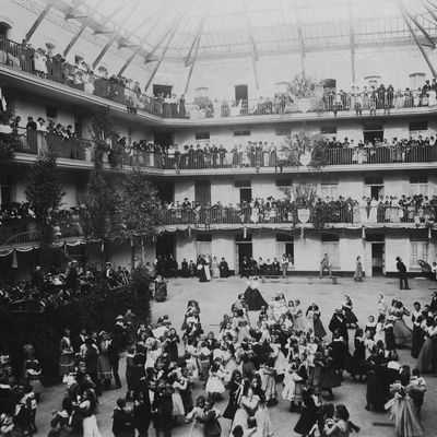 We go back in time, to the mid-19th century, when the Familistère was in its original use. The ensemble of the Familistère consists of three interconnected residential buildings, a nursery, a school, a theatre, and a factory. Inside the building: the atrium and the galleries—an important architectural element, a space to meet and mingle, that reminds us of Fourier’s ideas for the Phalanstère.