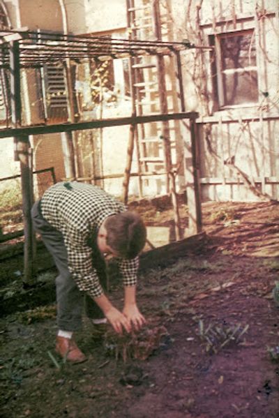 The garden should be allocated on the Southern side of the house. The dry toilet (Metroklo), that allows the collection of urine and excrement, is an annex to the house in proximity to the garden. Next to the toilets there is a winter garden, where the plant pupils are grown, in order to benefit more from the sun. The dung silo (Dungsilo), a container to store and transform organic waste into fertiliser, is located at the southern end of the garden. The presence of plants outside of the garden itself—such as the wild wine that grows on the walls of the house and around the garden (Schutzmauern)—reveals another aspect of Migge’s thinking: efficiency. An underground pipe transports the waste water from the house (shower, kitchen) to the garden.
