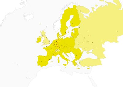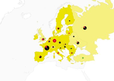 Locations of nuclear power plants in Europe.
