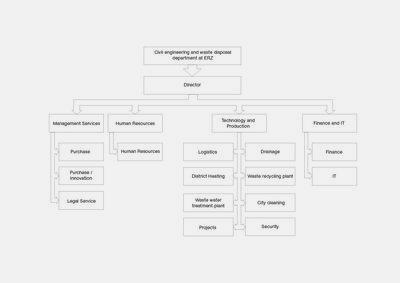ERZ, which stands for “Entsorgung und Recycling Zürich”, is organised into various departments. There is a clear hierarchy. It is a service department within the Department of Civil Engineering and Waste Management of the City of Zurich. The most important tasks include keeping public spaces clean, waste disposal and recycling, water and waste water and district heating production. The organisation is constantly expanding its areas of activity and is focusing on achieving climate targets as well as net-zero strategies for the year 2040.