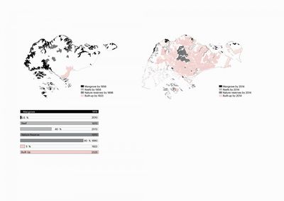But already during the 19th century, after the port settlement had been established in 1819, the urban transformation the island was far reaching. Agriculture, the building of roads, railways and buildings led to the cutting down of jungles, drying of swamps and disappearance of coastal mangrove forests. During the 20th century, the effects on the physical environment of urbanisation and industrialisation intensified. The post-independence development agenda during the 1960s, 70s and 80s emphasised on Singapore’s economic autonomy from Malaysia, brushing other concerns aside. Bedok, East Coast and Jurong areas were among the first to undergo a complete transformation of the physical setting, the “cutting” of hills and “filling” of the coastline. Until today, the land reclamation has added around 25 % to Singapore’s land area, replacing much of the old coastline with a new artificial interface between land and sea.