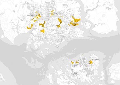 The 1980s brought regionalisation of economic processes, with manufacturing, electronic industries and agriculture leading the migration from Singapore to Riau and Johor. These processes were helped by independent initiatives by Malaysian and Indonesian governments to industrialise, including the massive palm oil production, and the development of petrochemical facilities (such as Pasir Gudang) for processing, storing and trade of oil along the Straits of Singapore and the Straits of Johor. As a consequence of the high paced growth of cities in the last three decades, much of the tri-national region has experienced the same pressures on ‘nature’. Huge reclamation projects are today equally characteristic of the coastlines of Singapore, Batam Islands and Johor Bahru. It is estimated that in Singapore, 99 % of all original mangrove forest has been extinct, while the Johor State has experienced the highest mangrove losses in Malaysia, with 42 % reduction since the 1970s. The impact on marine ecosystems of the shipping movements, dredging, reclamation and the spilling of chemical material is high throughout the region. In Singapore alone, more than 80 % of the territorial waters are used for the activities of the port, corresponding to large reduction of coral and other habitats. The absence of freshwater sources in Singapore and Riau led to the building of reservoirs, starting with MacRitchie Reservoir in 1867. The damming of river mouths along the coasts to collect fresh water has changed most of the former brackish streams.