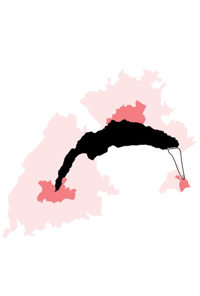 The agricultural plain and Rhone river delta is located between the slopes of the Massif du Chablais in the west and the Alpes Vaudoises on the east. This area is currently one of the most dynamic locations absorbing urban pressure from Lausanne and Montreux. The left bank of the plain belongs to Canton de Valais while the right side is part of Canton de Vaud, but both are part of the cross-border cooperation, the “Chablais region”. In terms of urban typology, the cross-section of the valley shows a similar structure along the entire stretch: a flat valley plain is covered with agriculture and scattered industry clusters, and flanked by hillsides with villages. The Rhone plain is an important agricultural cluster and is one of the most fertile soil patches one can find around the lake. Indeed, most of its surface is registered as Surface d’Assolement, and it is surveyed as a very productive zone on the soil suitability map of Switzerland.