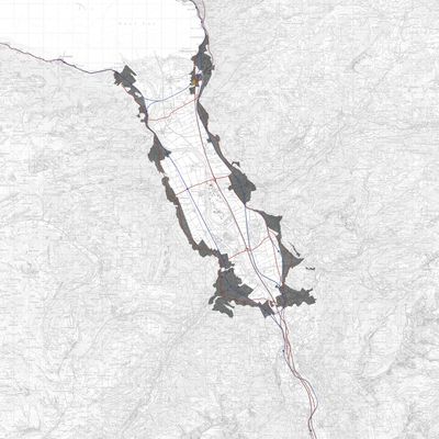 In 2009 the most recent flooding event occurred. This event made it urgent and crucial to take actions and envision a correction of the Rhone river-bed. This correction, in project since 2009, will be the third of its kind. The valley, once an unpredictable, ever-changing and hostile swamp (as depicted on a map from the period of Napoleon’s Rule) became dry and started to be inhabited, intensely cultivated and industrialized. The natural movements of the Rhone and the previous correction projects induced major changes in the land use and the landscape of the valley. It is to be expected that the third correction project might be decisive for the future of the valley. This is an opportunity to rethink and work-out the negotiation line between the forces of urban expansion, agriculture and water management, in a way that they do not oppose but coproduce the urban territory.