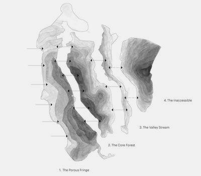 Topčider & Košutnjak are deeply rooted in the minds of the Belgrade people as heritage sites, and their rich history is kept within the many destinations and toponyms. Both forested hills are used as leisure spaces for mountain biking, climbing, or relaxing walks. The rapid city development of Belgrade during the socialist period led to former villages encroaching on the hills and forests, challenging once again the meaning and appreciation of forests in the city. Admitting the current development tendencies around the forest hills and shifting symbolic meaning of wooded sites in the urban fabric, the project proposes to emphasise Topčider & Košutnjak as protected public forest parks. Creating strategic and curated access in distinct zones of the forest parks will help re-integrate the landscape into the broader Metropolitan picture and emphasise its importance and acceptance as Belgrade’s green lung.