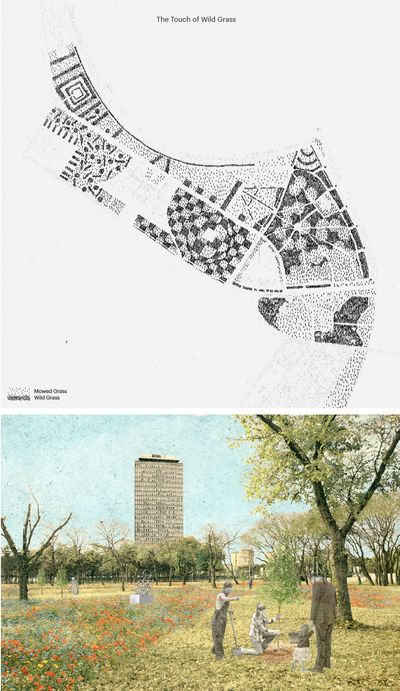 Additionally, the two projects “Touch of Wild Grass” and “Planting Trees with Friends”, focus on giving Ušće consistent yet locally specific textures of wild grasses and trees powered by citizens’ participation. Each year, competition amongst the citizens of Belgrade will provide a plan of wild grass pattern for the park, which the gardeners would then implement. “Planting Trees with Friends” will invite Belgraders to come and plant a tree of friendship, perpetuating the Non-Aligned Movement’s (NAM) ritual of goodwill. New trees will spread across Ušće, bringing together a community of guardians of Ušće. The landscape will symbolise shared values and a familiar democratic gesture. The long space for public gatherings proposes a T-shaped shared-use street, which could be entirely pedestrian on weekends and during summer.