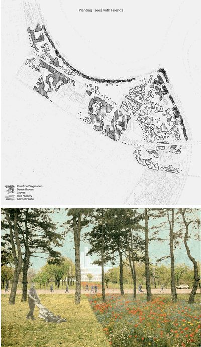 As the memories of the site’s political past fade and its modernist features as a non-programmed, open space are contested, the project explores possibilities to re-imagine the Ušće landscape under the contemporary pressure for leisure, commerce, and development. Thanks to its heritage and position in Belgrade’s centre, Ušće Park has the potential to become a unique public area for Belgrade—currently dormant with only a few in-tense moments and poorly connected, vanishing from the citizens of Belgrade’s psycho-geography. The project reveals Ušće as a patchwork of interwoven miniature landscapes or mali pejzaži; each gathered around “architectural gems.” For now, this system is too loose and fails to generate an intelligible unity. The proposal Ušće Park of Little Landscapes: Growing New Friendships is an attempt to reclaim Ušće‘s role as a symbolic public space for the city. It brings one of Belgrade’s largest parks back to life, aiming to create a coherent space with changing characters of growing new friendships.