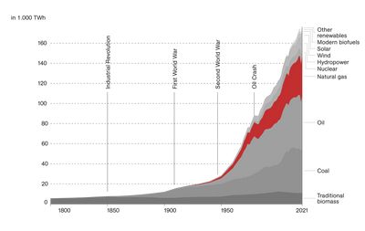 Source: Vaclav Smil, 2017, and BP Statistical Review of World Energy, 2022