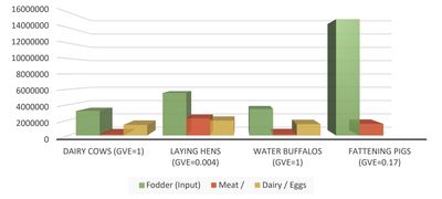 Arable land needs to be used exclusively for the cultivation of human food with exceptions being the improvement of soil fertility and the increase of biodiversity. Pork needs to be relinquished as a meat source. Pigs can also easily be released back into the wild as they are very resilient. Chicken farming needs to be reduced as much as possible. Both are to be fed according to the Feed-no-Food Principle; side products and waste. Cows, sheep, goats and pigs can also be inserted strategically into territories to help with landscaping and field maintenance, reclaiming their role as co-workers.