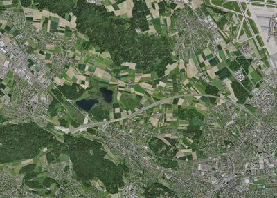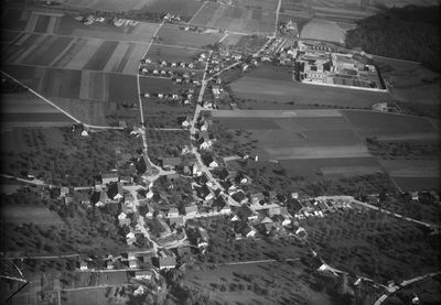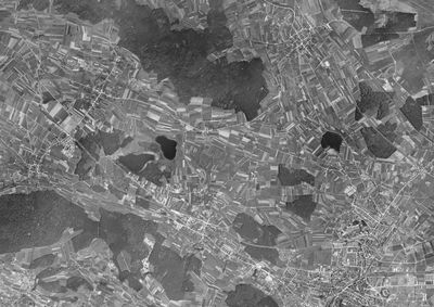 Comparing the satellite image from 2022 with with one from 1946 taken shortly after the end of the Second World War, drastic transformations of the agricultural territory become apparent such as the change in field size: over the decades, individual small plots have been merged, and now form large fields.
