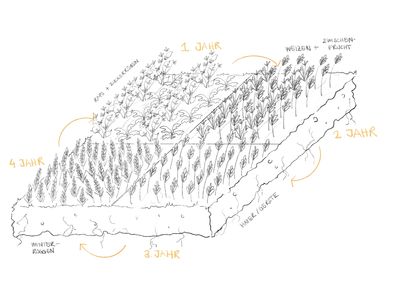 Most grains are cultivated in a crop rotation system, where on a plot of land, a different kind of crop is cultivated every year. The significance of Crop Rotation Areas (FFF) is emphasized by their role in pest control and managing nutrient needs and regeneration. Implementing a four-field crop rotation practice dating back to the Middle Ages involves leaving one field fallow each year to recuperate and build up nitrogen.
