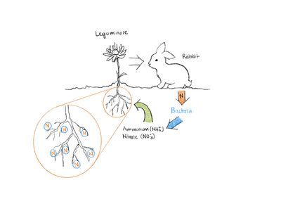 Nitrogen is bound in the soil by bacteria that live in the root tubers of legumes. Legumes form a family in the plant world that includes peas, beans, soybeans, lupins and clover. The bacteria convert the nitrogen with oxygen to nitrates and thus feed the host plant and also pass it onto the soil. Also, animal manure has a very high nitrogen content, which is released to the soil in the form of slurry or manure and in turn is made available to the plants by the worms, bacteria, algae and fungi.