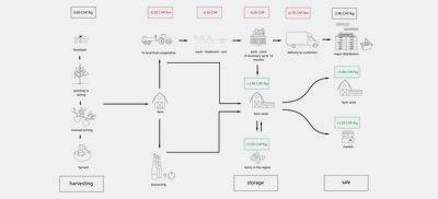 The distribution process begins with the initial sorting of the harvest, where only a small portion (25-30 %) is discarded. After further sorting and washing, the produce is either sent directly to farm shops or farms in the region. Alternatively, the goods are transported to the MCP gas treatment facility. This treatment costs farmers 20-30 cents per kilogram. Afterwards, the produce either returns to farm shops or proceeds to the CA warehouse, ultimately reaching large retailers. The farmer incurs costs at each intermediate step but can sell these products at a fair price in their farm shop, whereas large companies undercut these prices significantly.