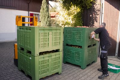Secondly, we have the cooperative Meh als Gmües, which collaborates with the Wolfswinkel Health Center. In exchange for support during harvest, they deliver by bicycle directly to the healthcare center’s canteen.