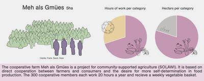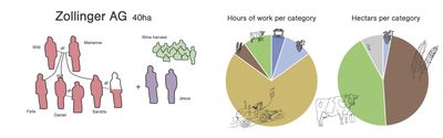 Our research focuses on labour. In order to find out more about our topic, we interviewed farmers in our study area: Zürich North. We discovered the stories of individual farmers and new models of agriculture. We asked questions about the past, present and future of agriculture. Compared to the past, the mechanisation of agriculture has led to great changes from the workers’ point of view. The number of workers has decreased significantly, and thanks to the machines available, more land can be cultivated in less time. The type of farm has also changed: whereas the tradition was to pass the management of the farm from generation to generation, now some of the farmers interviewed are no longer sure of this. Moreover, new models of farming are emerging.