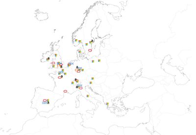 The map shows the data centre locations within Europe where the Stage I data may be stored. The locations of the following cloud providers are shown: Oracle, Alibaba Cloud, Microsoft Azure, Amazon Web Services (AWS) and International Business Machines cooperation (IBM). Source: unknown. Scheme: Joanna Druey, 2025.