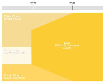 Government data is currently stored in public clouds run by international providers. Switzerland plans to introduce the Swiss Government Cloud (SGC). This would allow Switzerland to regain control over their data and ensure data sovereignty. Moreover and more importantly, the SGC would allow Switzerland to have a unified user platform across all their competencies. The aim is to own and manage the own data. The first data migration is planned to take place in the year 2027. By 2031 the data migration is to be concluded.