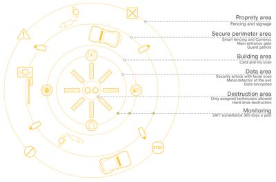 The destruction area refers to the area where the hard disks are destroyed. It is important to acknowledge that data centres offer areas for customers to destroy their hard drives in case they want certain data to disappear without the risk of losing them, having them stolen, or copied. Therefore, the destruction area is only accessible for assigned technicians.