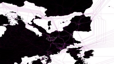 The Swiss network extends beyond national borders, connecting to transcontinental coastal nodes such as Marseille. Here, terrestrial fibres merge with a dense congregation of submarine cables linking Europe to Africa, the Middle East, and the Americas. The apparent self-containment of the national network dissolves into shared vulnerabilities and geopolitical interdependencies.