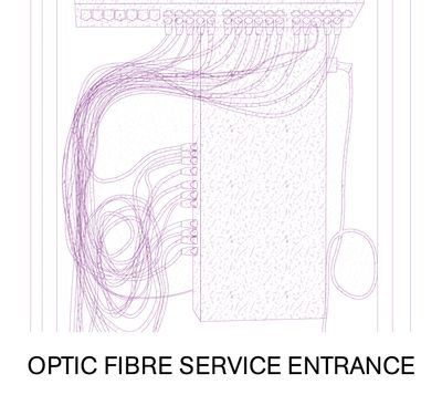 The house connection marks the transition between public and private domains. It is where the fibre optic cables that run below the street and along public ducts enters the building and where the abstract flow of light pulses is spliced into private domestic data flows. In Switzerland, Swisscom is the largest fibre optic provider, aiming to connect 75-80 % of homes and businesses by 2030.