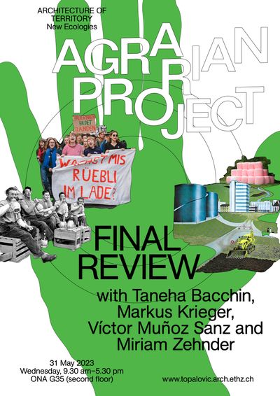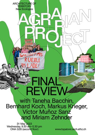 We warmly invite you to the final review of the undergraduate studio Agrarian Project: Commoning Land and Labour. Our guests will be Taneha Bacchin (TU Delft), Bernhard Koch (Grün Stadt Zürich), Markus Krieger (ARCH+), Víctor Muñoz Sanz (TU Delft) and Miriam Zehnder (Cantonal Office for Spatial Development, Canton of Zurich).