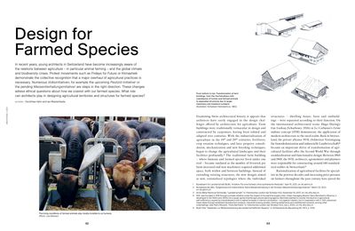 In recent years, young architects in Switzerland have become increasingly aware of the relations between agriculture—in particular animal farming—and the global climate and biodiversity crises. Protest movements such as Fridays for Future or Klimastreik demonstrate the collective recognition that a major overhaul of agricultural practices is necessary. Numerous Volksinitiativen, for example the upcoming Pestizid-Initiative or the pending Massentierhaltungsinitiative are steps in the right direction. These changes address ethical questions about how we coexist with our farmed species. What role can architects play in designing agricultural territories and structures for farmed species?