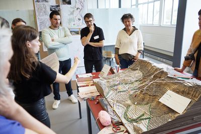 At the end of June 2025, the MAS UTD presented the collective project for Uetliberg’s agroecological change in the Dunkelhölzli greenhouses in Altstetten, with a public event, an exhibition and a large-scale model. The event brought together the GSZ team, farmers, researchers, invited guests and practitioners, highlighting the collaborative ethos of the study and resulting in lively debates, fresh insights and a sense of potential.